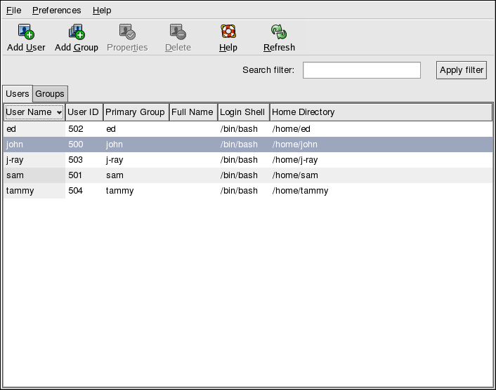 Figure 1-16. The Red Hat User Manager